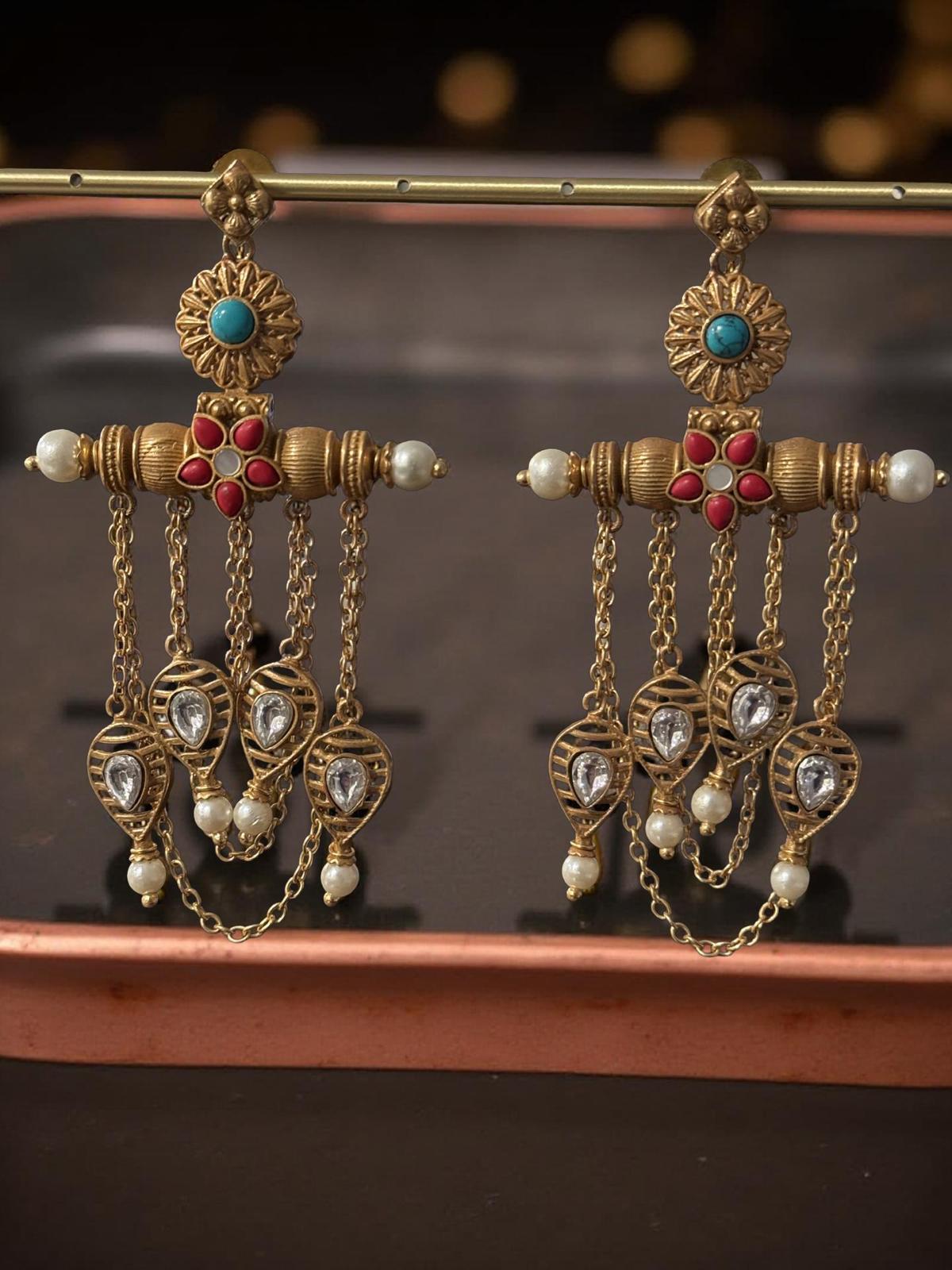 • Lightweight copper earrings with chain danglers