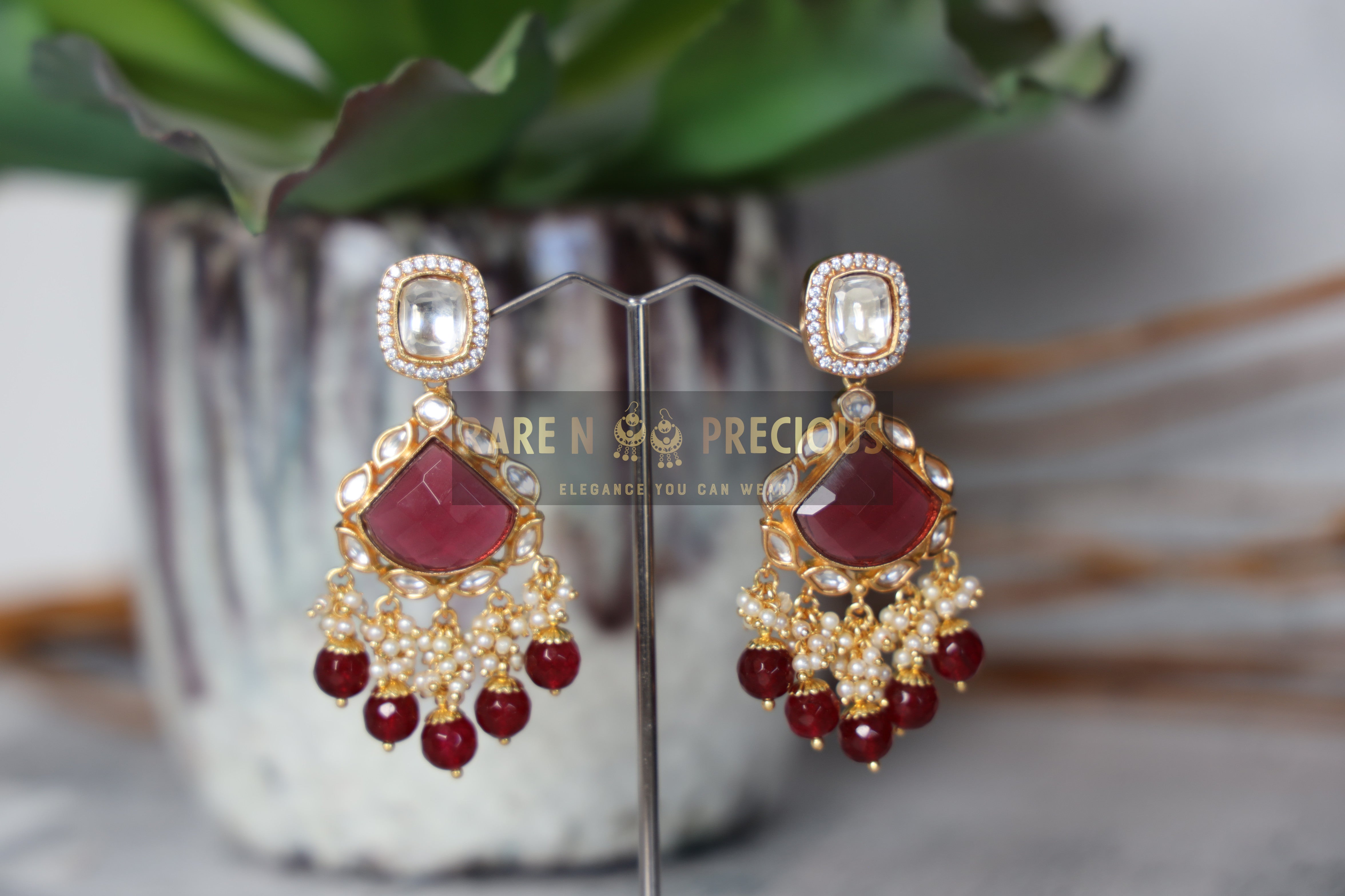 • Natural multi-faceted stone with uncut kundan and CZ
