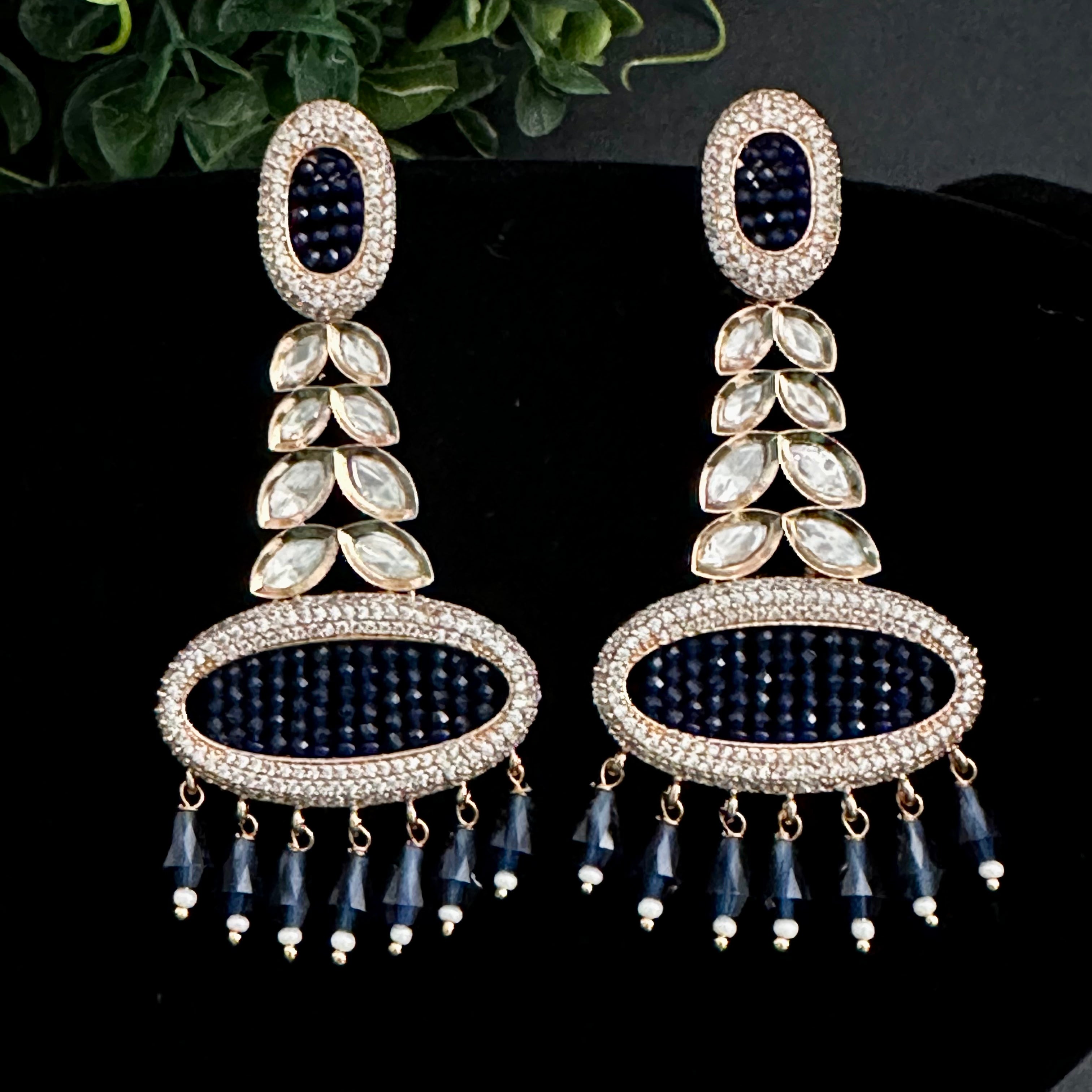 Victorian finished silver foil earrings with CZ and onyx beads piroi