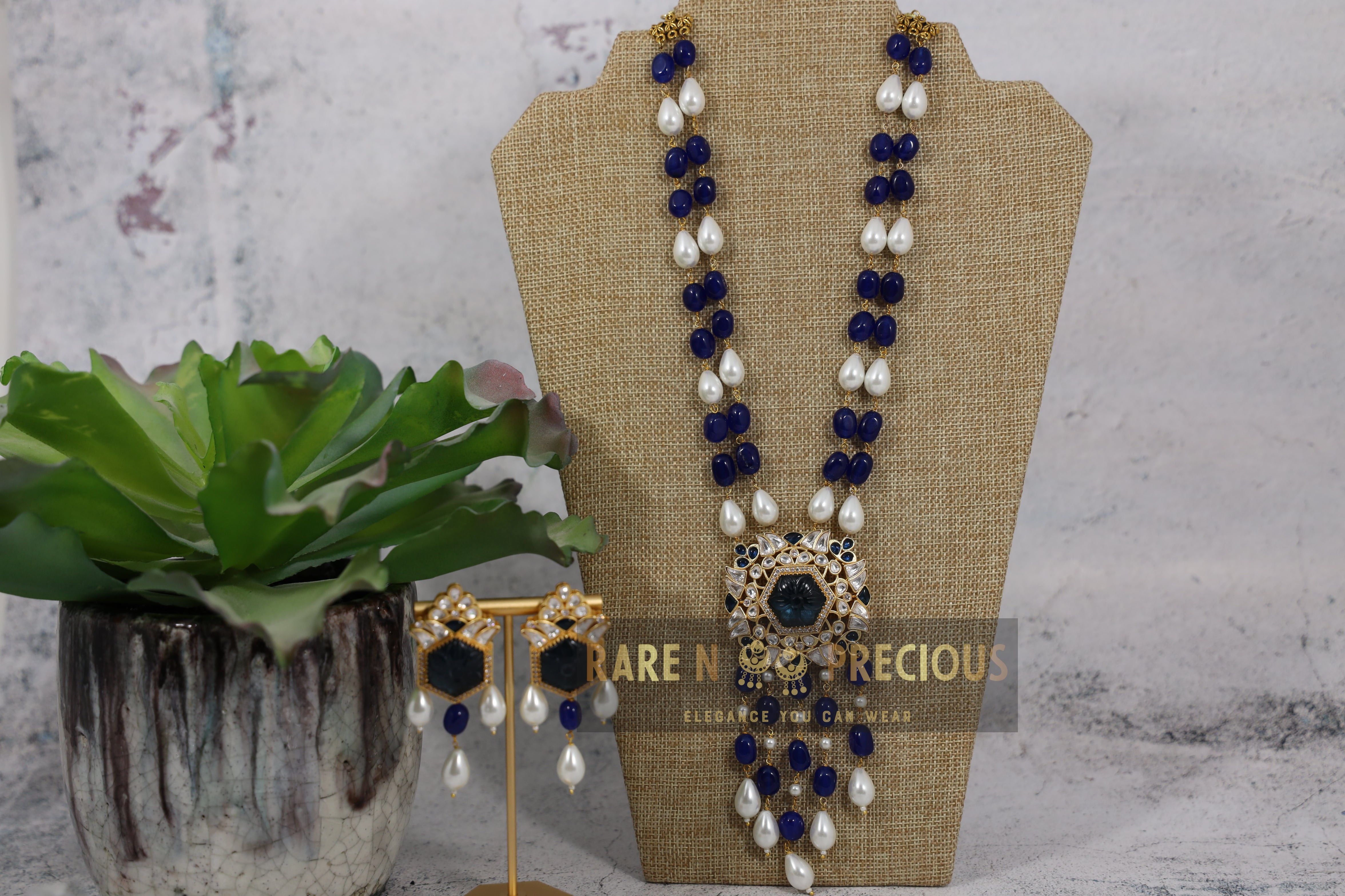 • Saphire Pearl maala with silver foil pendant 2