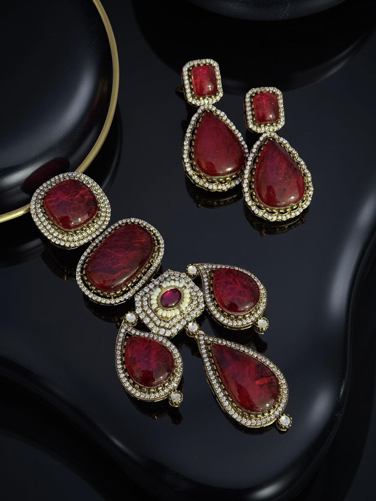 • Big statement Doublet pendant on Hasli with matching earrings