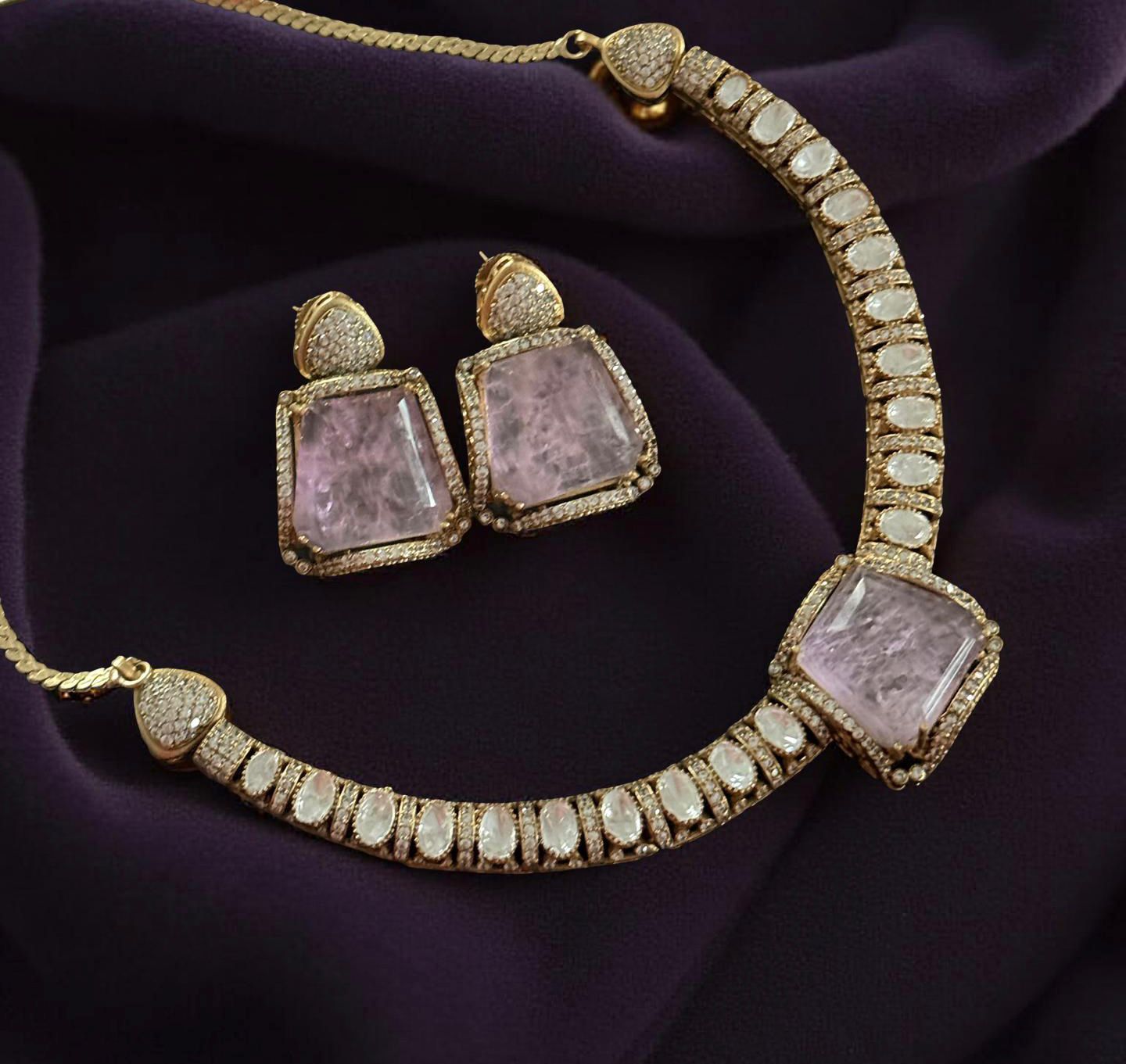 • Delicate hasli set in polki kundan and doublet stones
