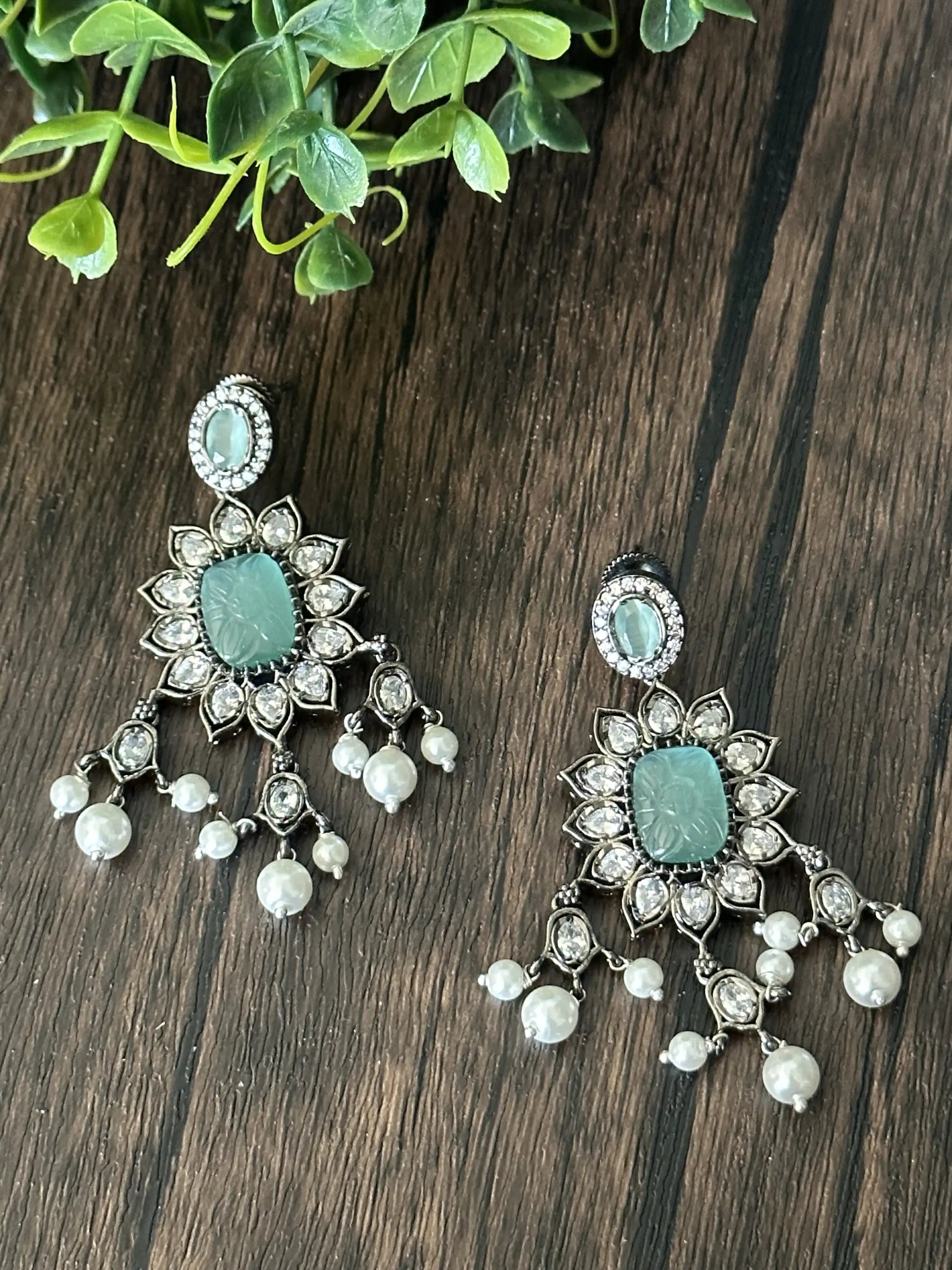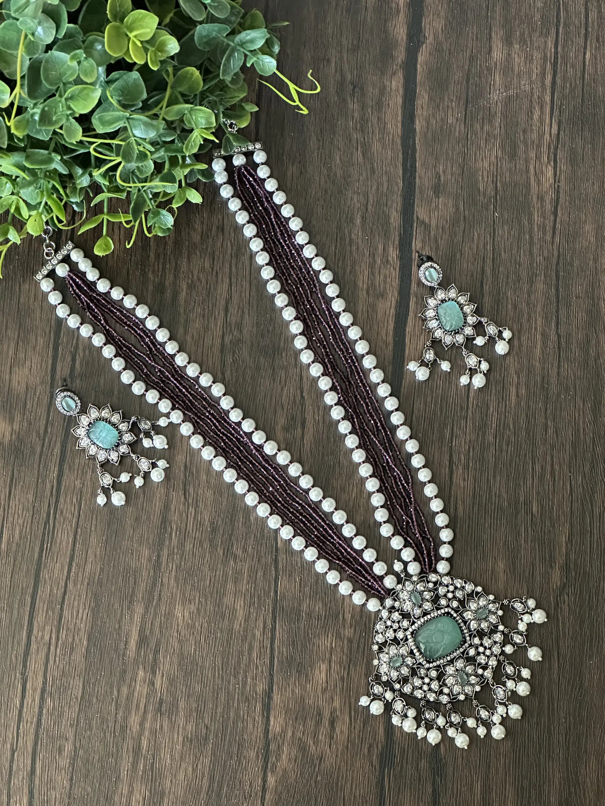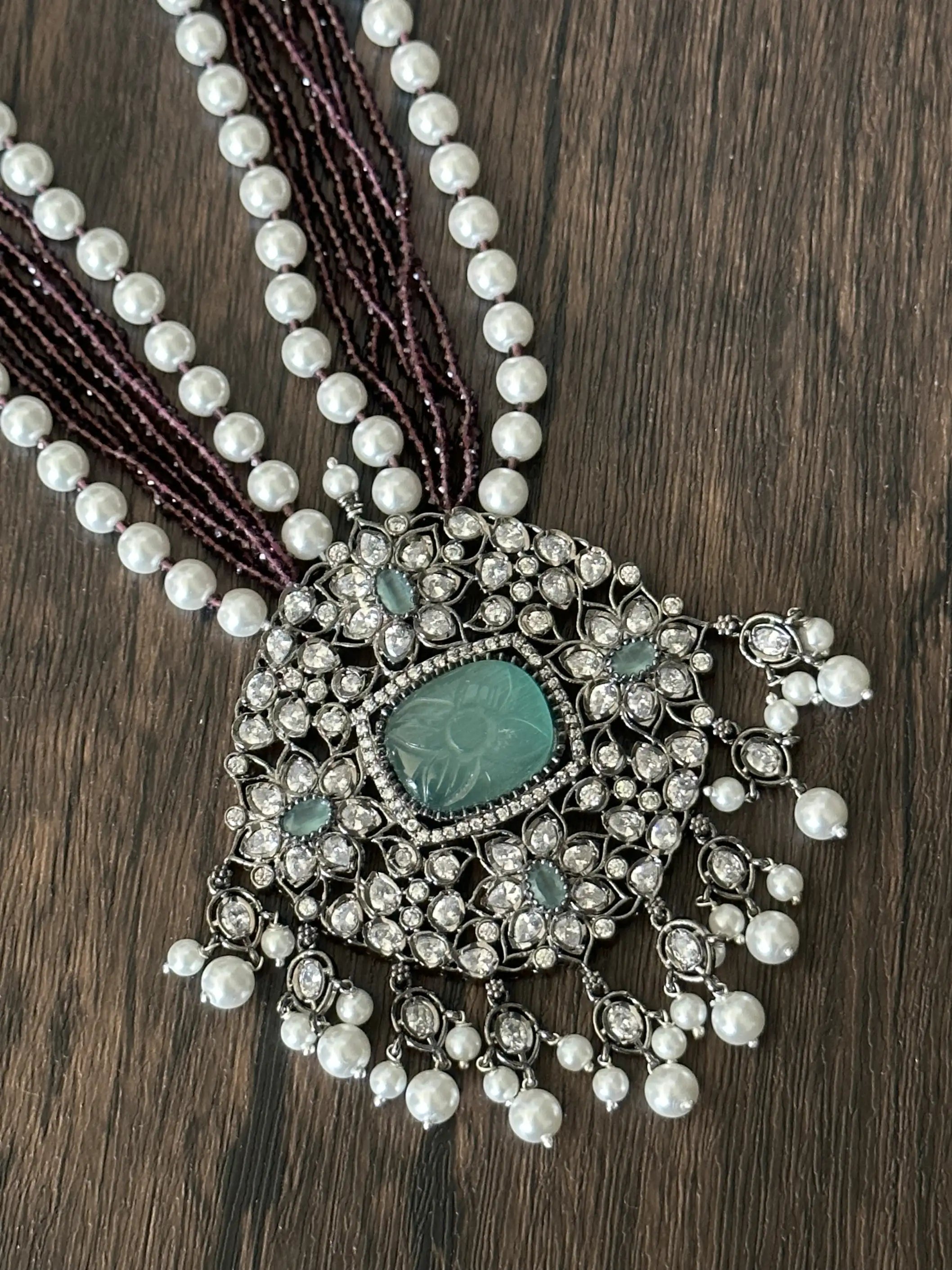 • Pearls and red onyx beads necklace with vic CZ pendant and matching earrings