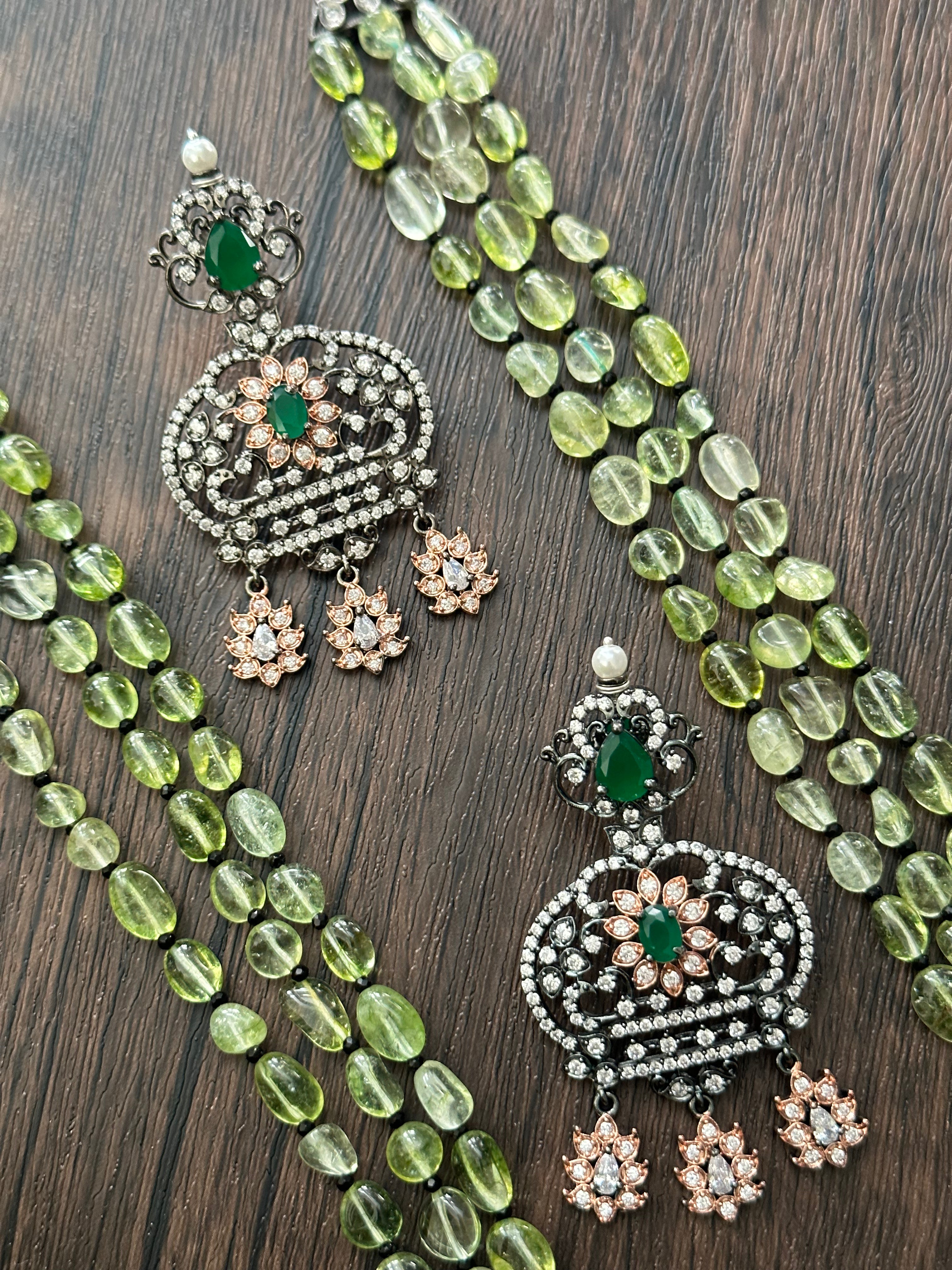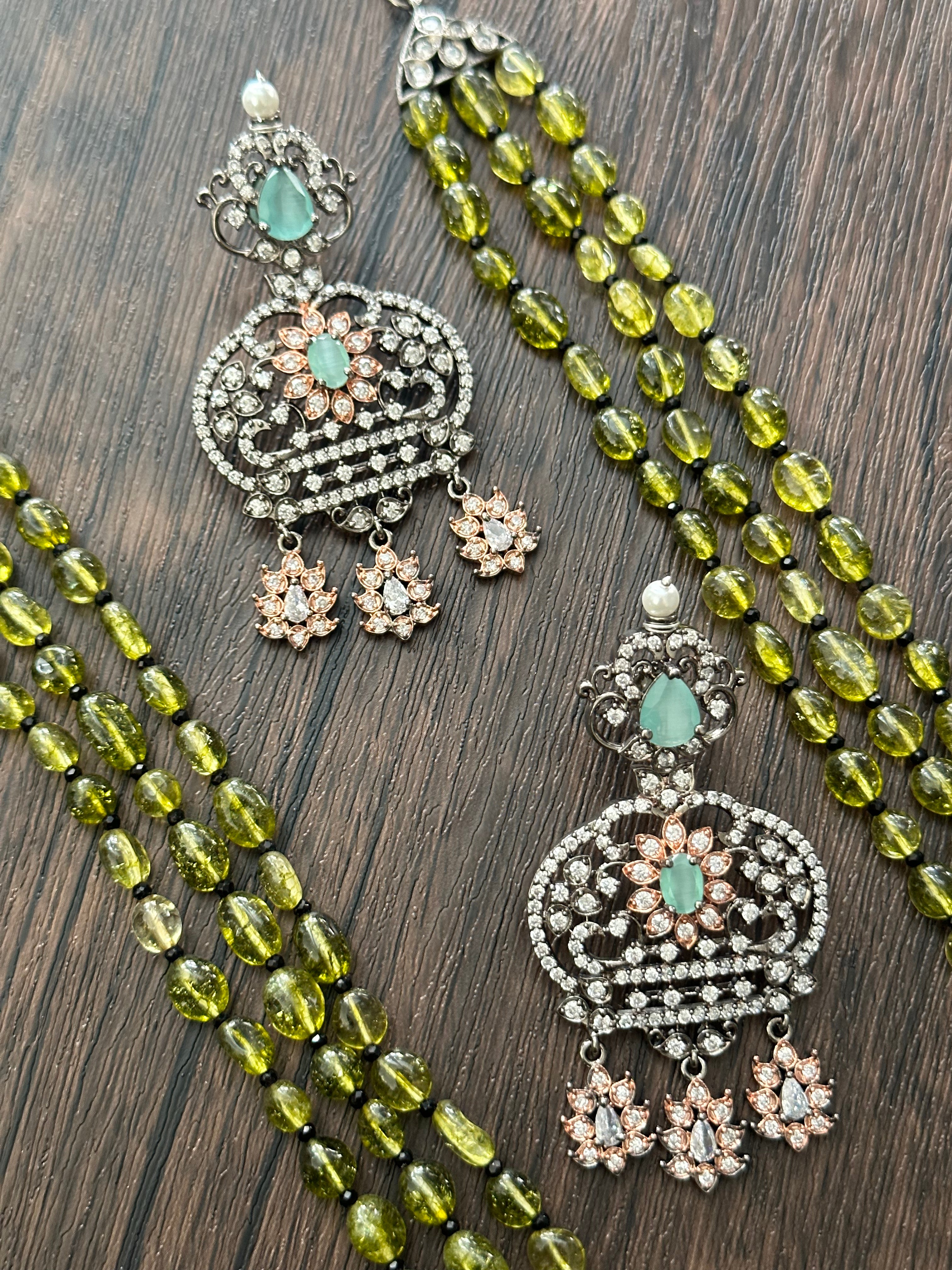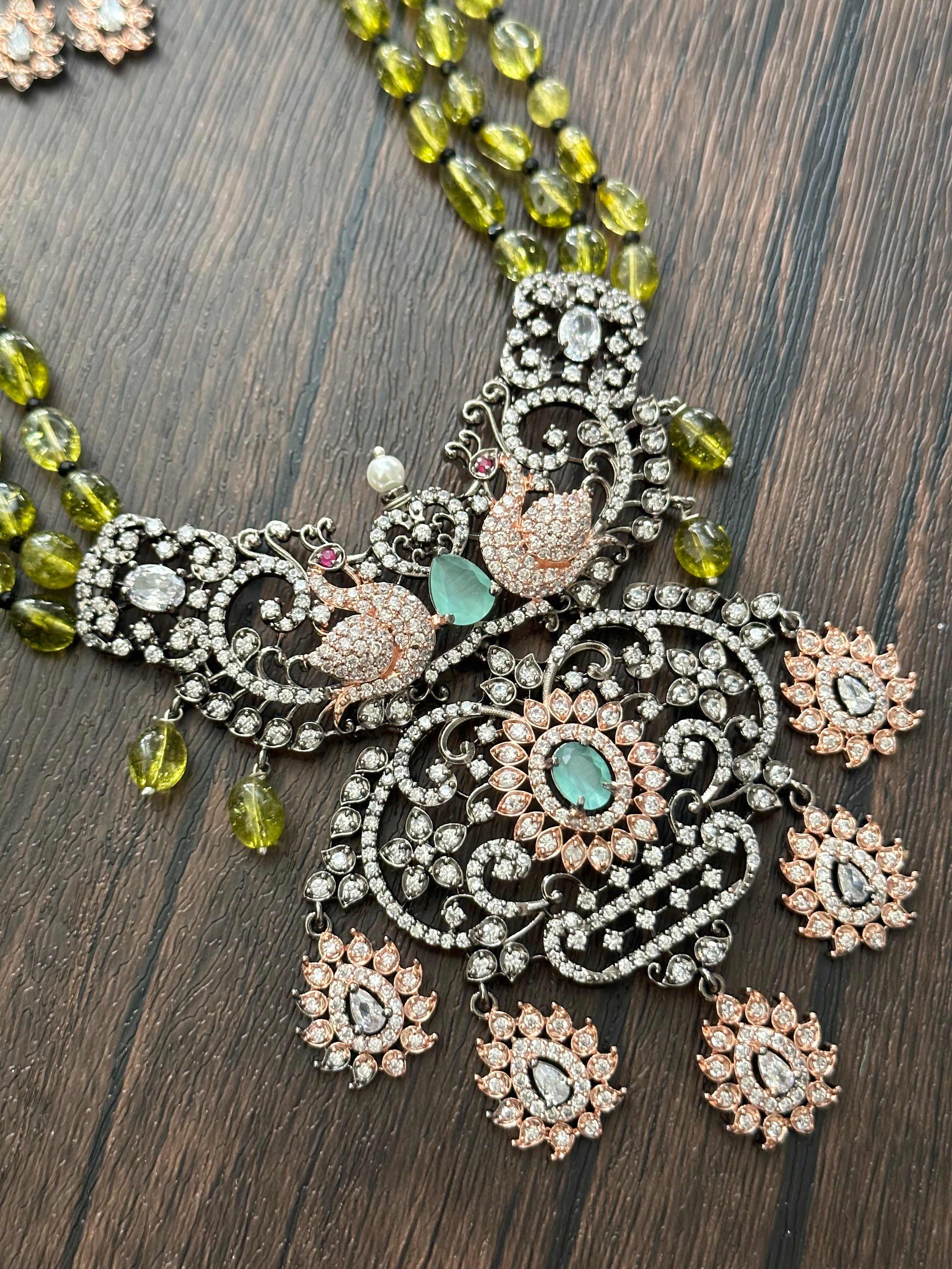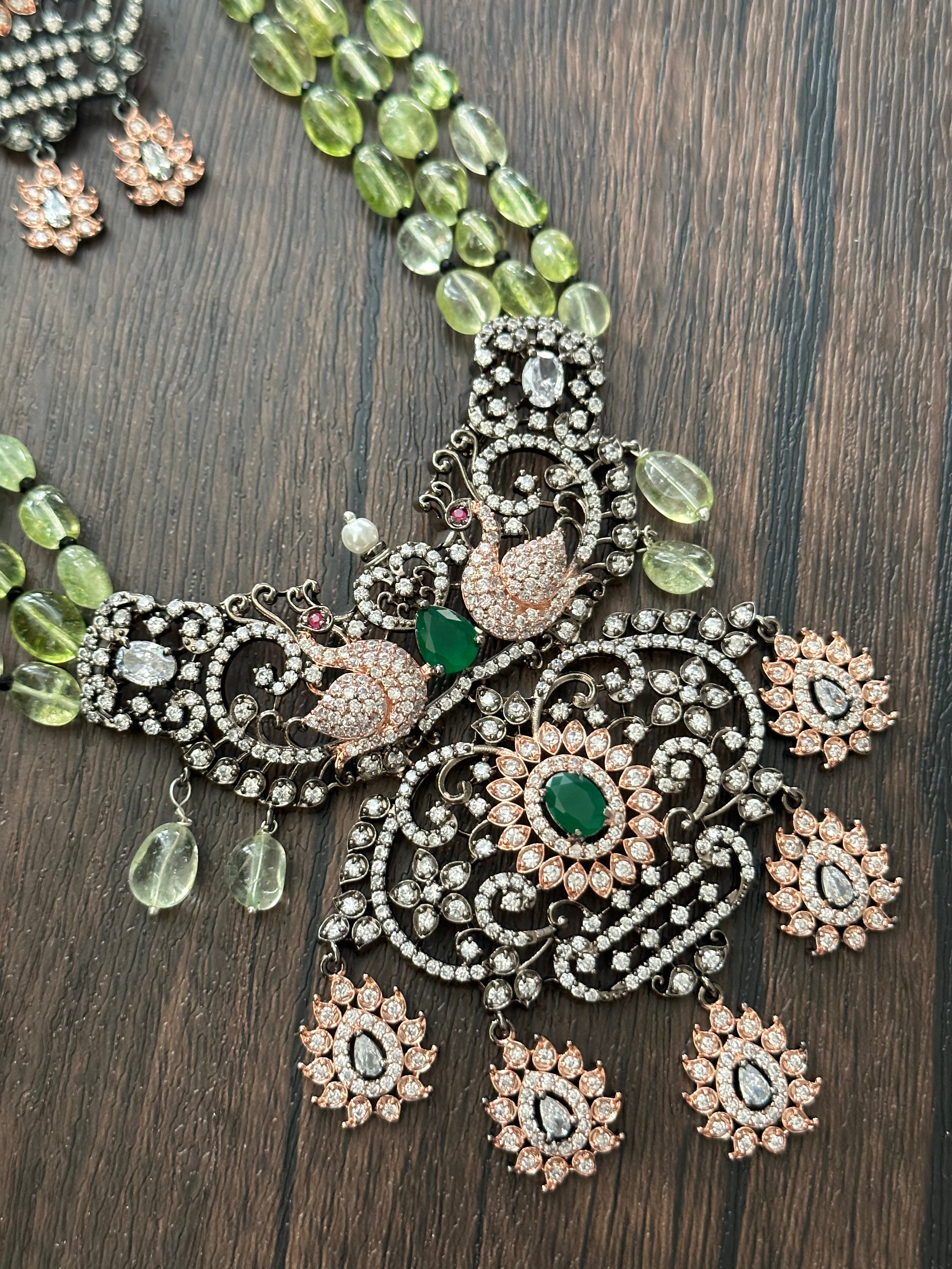 • Beaded necklace with peacock motif pendant in vic and rose finish