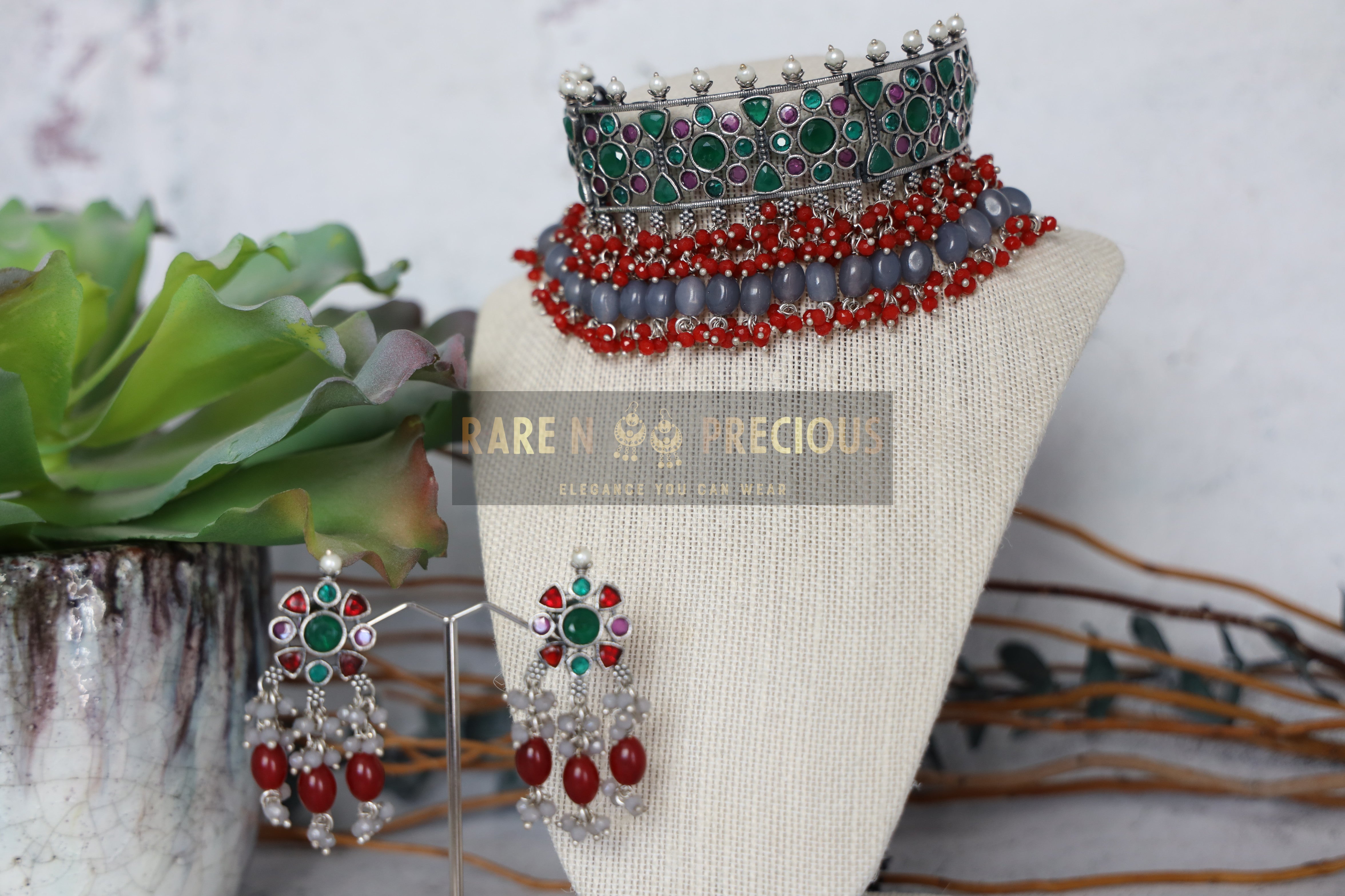 • German silver choker set with stones & beads